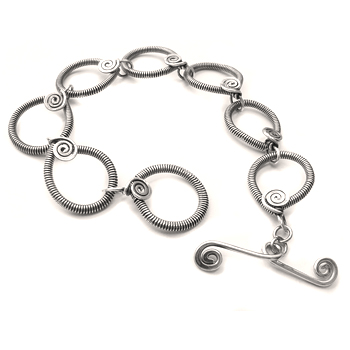 Using coils, spirals and wraps you will learn this somewhat vintage and ethnic looking chain. This chain makes great necklaces and bracelets.