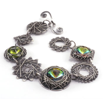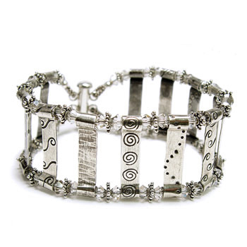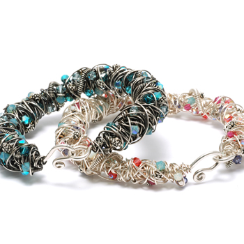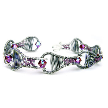 Ahh, this bracelet feels amazing on! Working in wire, you will start with a double spiral link pattern and then embellish it with gorgeous Austrian Crystals and Bali Silver Beads. You will also learn tips and tricks to antiquing and polishing.Buy the PDF Tutorial »