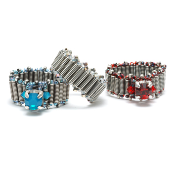 Here is a project that capitalizes on your wirework and seed bead skills. We will start by making a coil out of wire then snipping it up into tubes to then be treated as beads. Then stitch them together with seed beads, tiny Thai silver beads and Swarovski crystals to create a ring fit for a queen.Buy the PDF Tutorial »