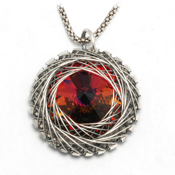 Come create this pendant inspired by the spirograph and string art from days gone by. Starting with a sterling blank, students will learn to notch and file the outer edge to provide the perfect layout to add weaves. These weaves will entrap and support a Swarovski stone. It is easier than it looks!Take the Online Class! »