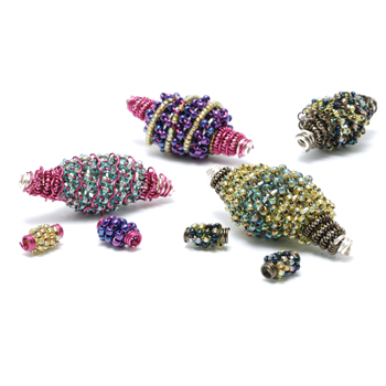 You will love the simplicity of this technique, which results in impressive, multi-textured beads. String, coil, and weave seed beads on wire to make five different beaded beads.Buy the PDF Tutorial »